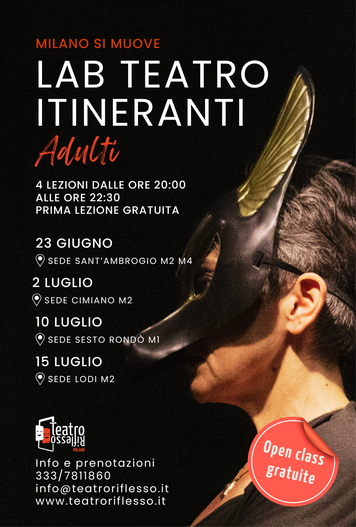 4 incontri serali in 4 sedi diverse, ciascuno con un tema unico, per sperimentare il teatro come pratica espressiva, creativa e relazionale.